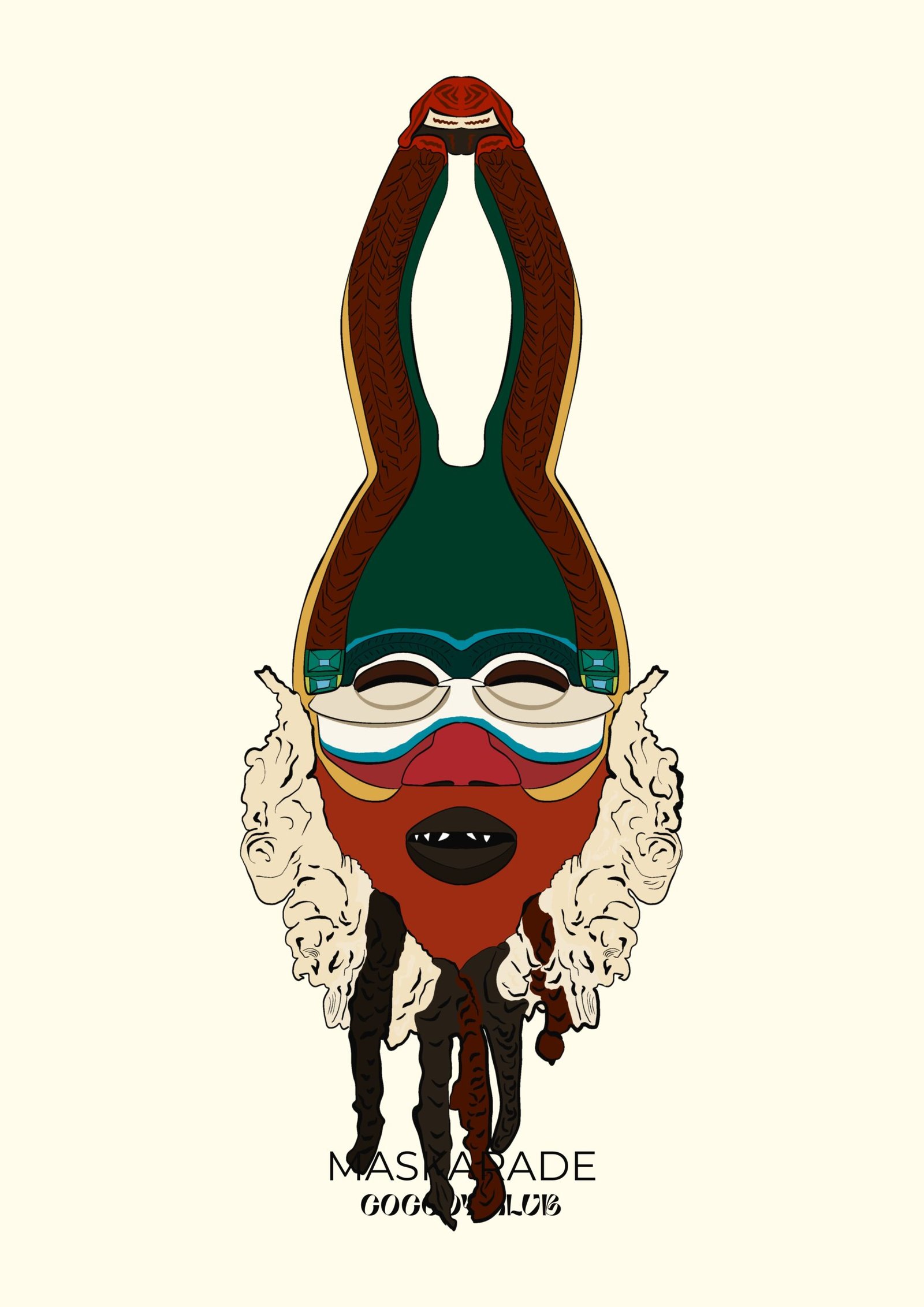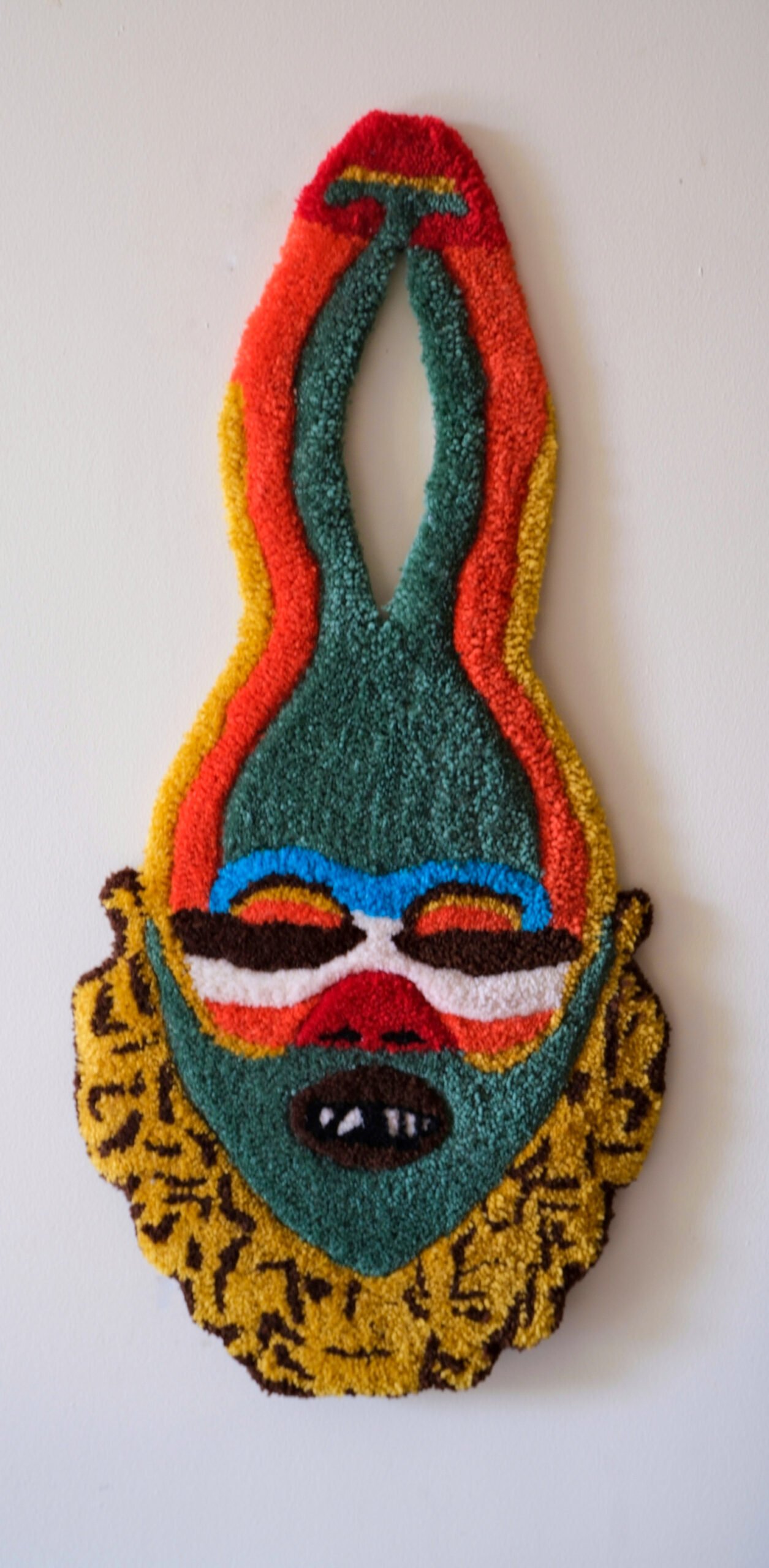 Les Métamorphoses – Masque Guéré est une œuvre textile en exemplaire unique, qui transpose la figure du masque Guéré dans un langage artistique et textile. Réalisée sous la forme d’un tapis tufté en laine.